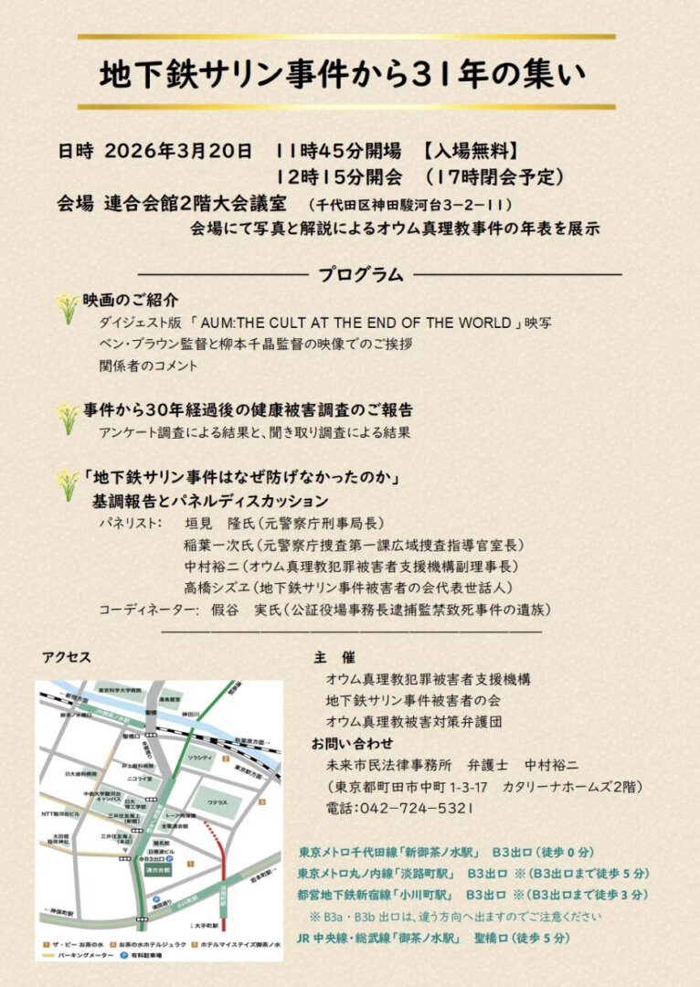 地下鉄サリン事件から31年の集い